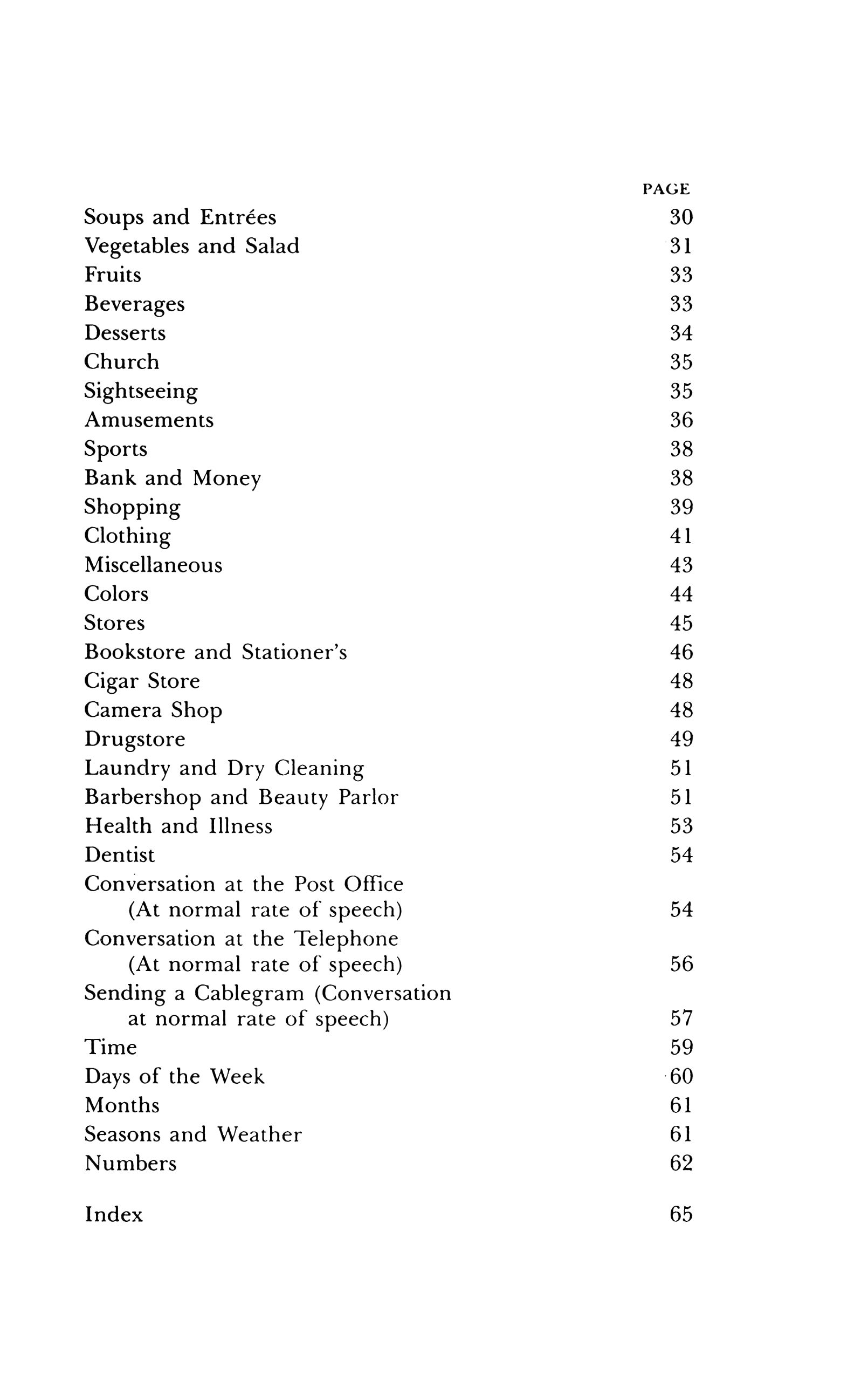 Included are basic phrases used in making yourself understood; general expressions; restaurants and specialty shops; phone conversations; boat, plane, and train travel; making hotel reservations; and much more. Each phrase in this inexpensive and easy-to-use book is accompanied by a phonetic pronunciation guide, and a complete index makes word and phrase location quick and easy.