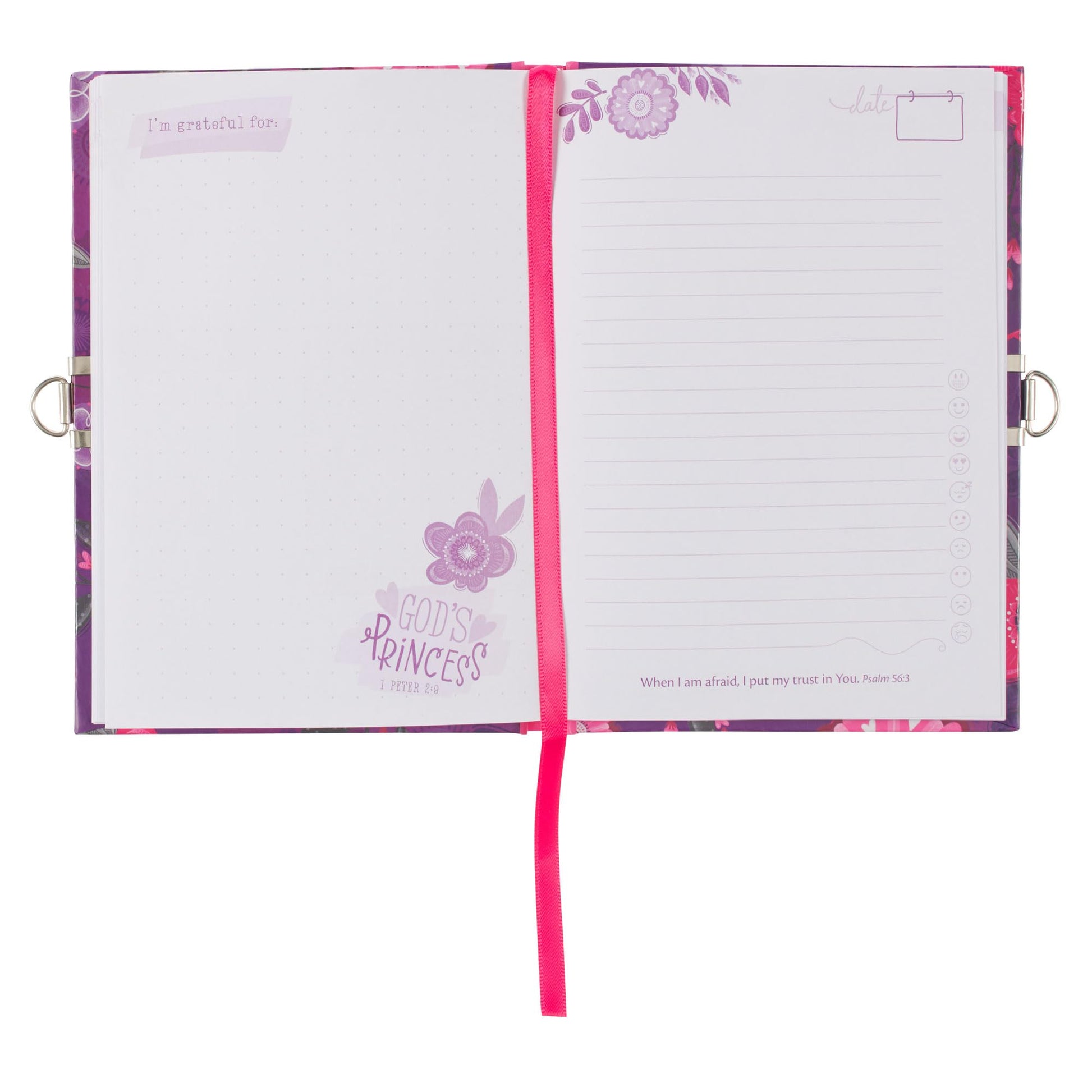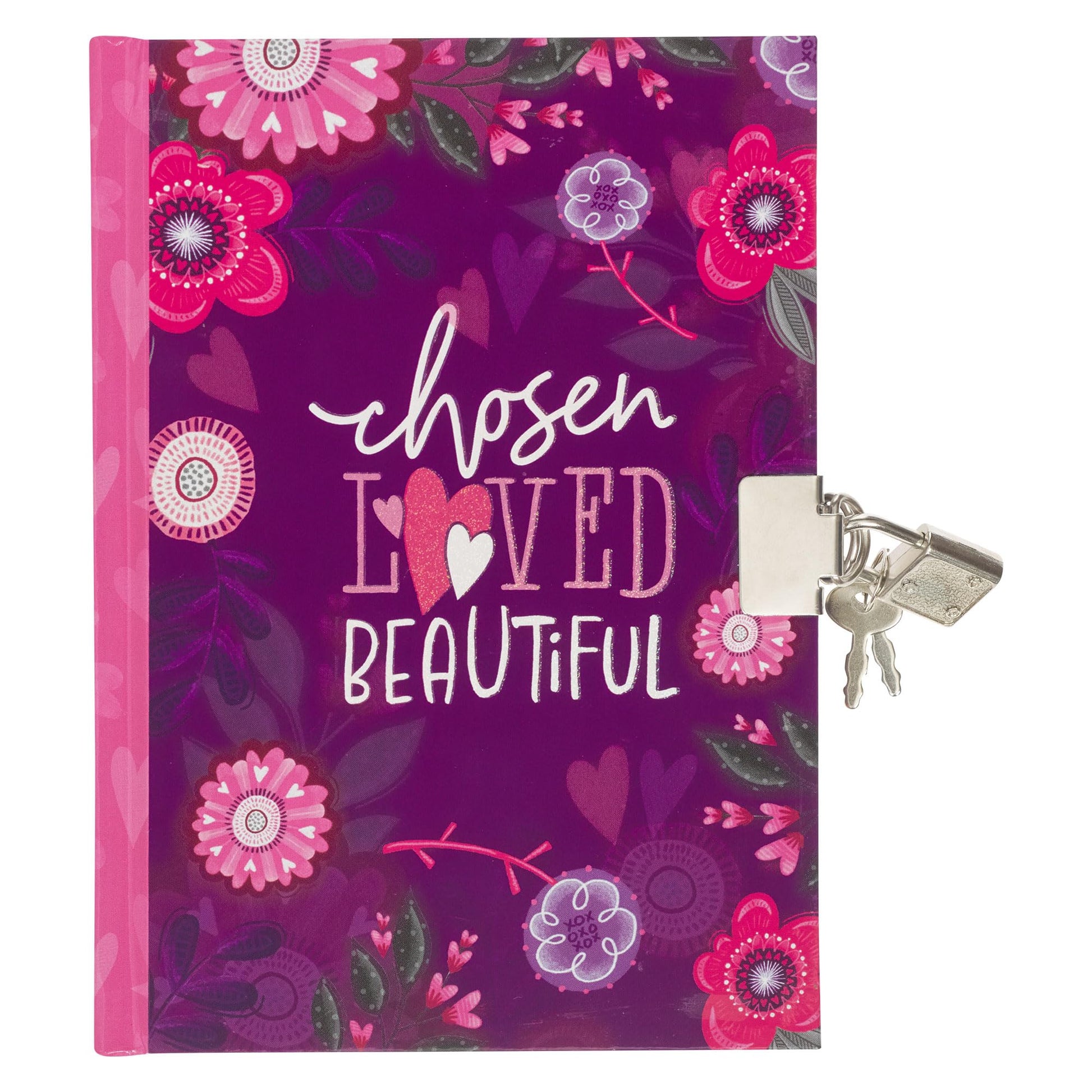 The Chosen Loved Beautiful Secret Diary is part of the God's Princess Pink and Purple Floral Collection. This collection also includes a matching stainless steel water bottle, a fashion Bible cover, and a gift bag.