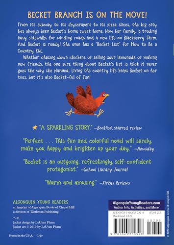 But Becket is ready! She even makes her own “Becket List” for How to Be a Country Kid. Things don’t always work out the way she planned, but whether it’s selling mouth-puckering lemonade, feeding hostile hens, or trying to make a new best friend, Becket is determined to use her city smarts to get a grip on country living.